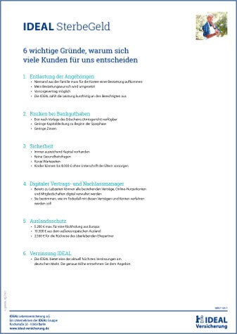 Sie wollen eine Vorschau auf die NEUE Kampagne der IDEAL zum Thema Sterbegeld?